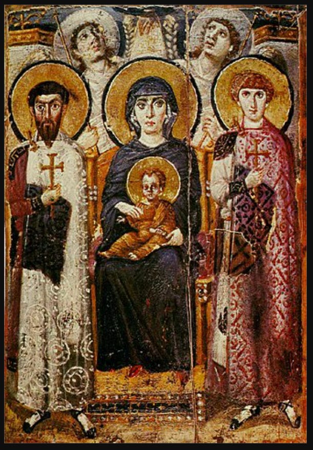Above: Icon of the Virgin and Child with angels and Sts. George and Theodore Stratelates, c. 600, one of few icons to survive in the period of iconoclasm.