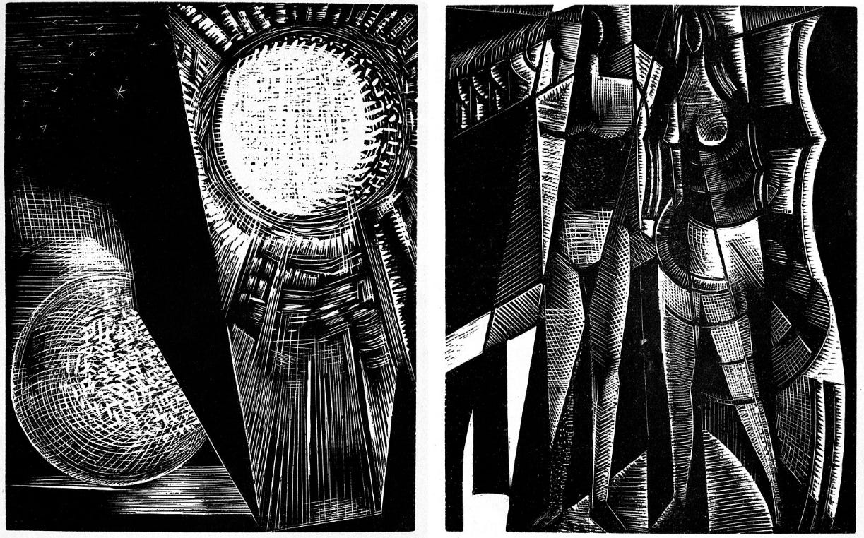 Above: The creation of Sun and Moon and The creation of Adam and Eve, Woodcuts from Genesis, 1924.