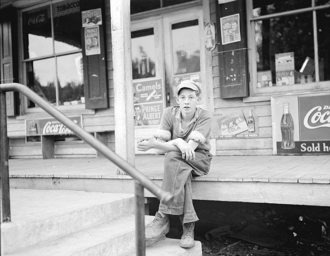 Above: Boy on porch of general store, Roseland, Virginia, 1938