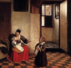 20 DecemberNumber 5Dec 20, 2023ShareBorn in 1629 – Pieter de Hooch, Dutch painter.Above: Detail from A Woman with a Baby in Her Lap, and a Small Child, 1658.