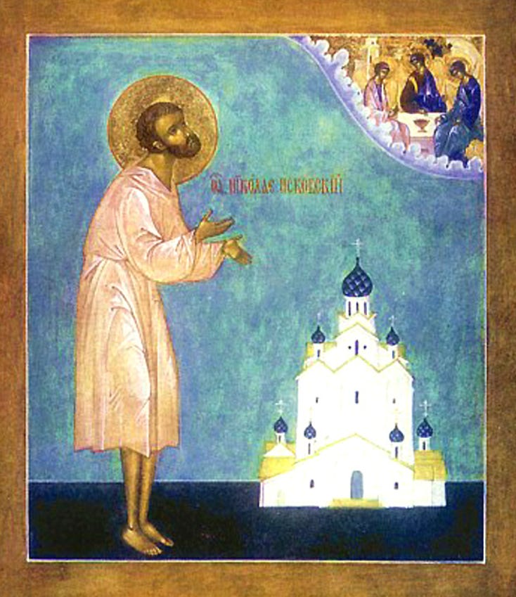 The fool for Christ invited the Tsar to visit his cell under the bell tower. When the Tsar arrived at the cell, the saint said, ‘Hush, come in and have a drink of water from us...’ Then the holy fool offered the Tsar a piece of raw meat.
