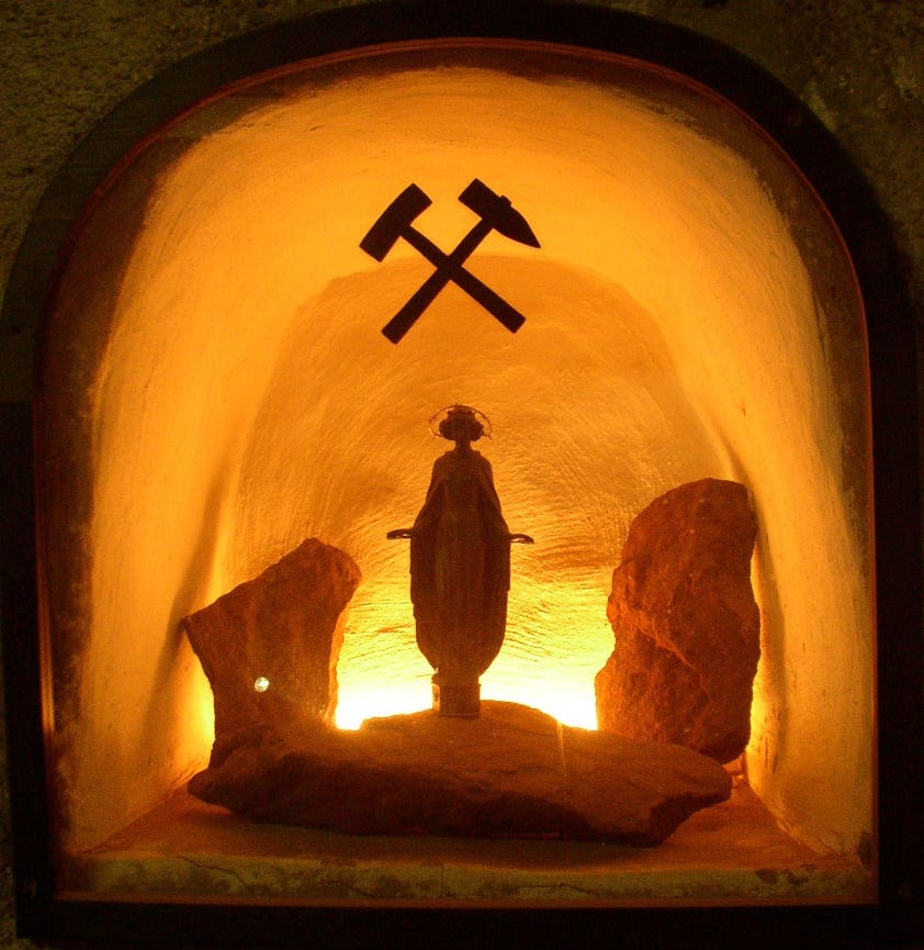 Above: Shrine to Saint Barbara in the German mine, Schacht Konrad.
