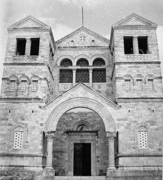 Top: A photograph made in 1995 of the Franciscan Church of the Transfiguration on Mount Tabor in Israel