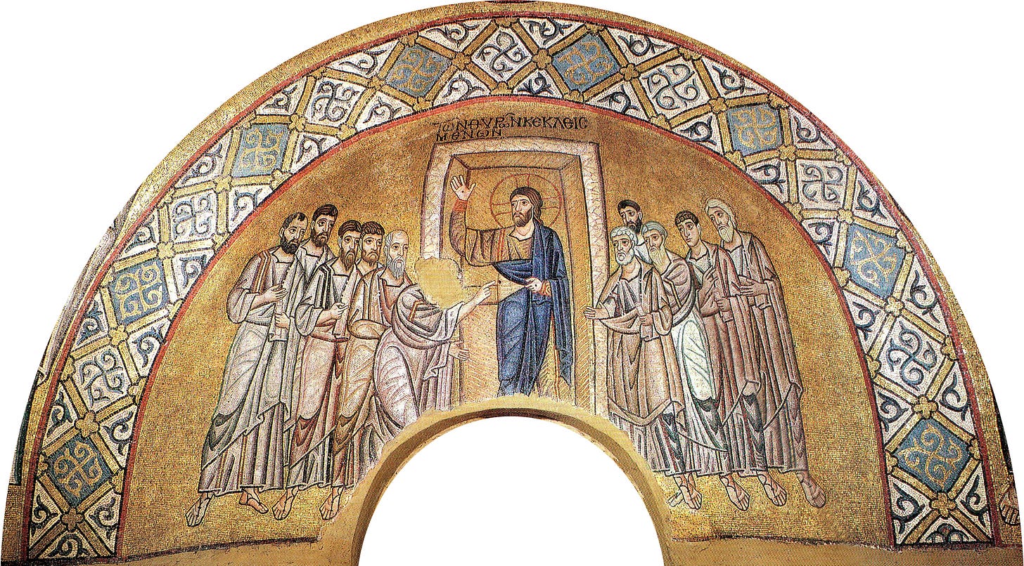 And eight days after, again his disciples were within, and Thomas with them. Then came Jesus, when the doors were shut, and stood in the midst, and said, “Peace be unto you.”