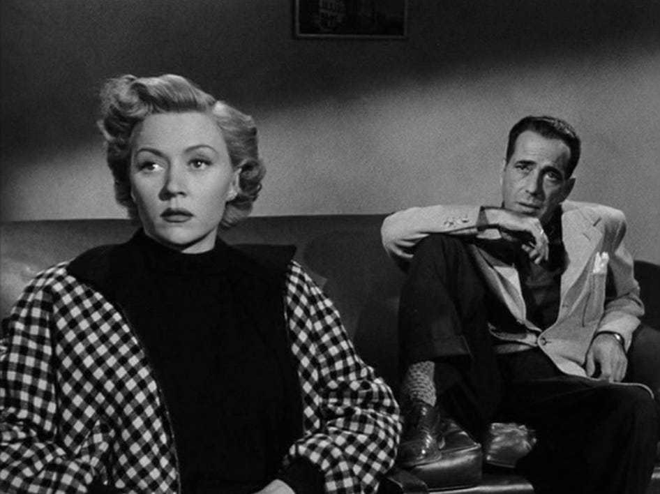 Above: Gloria Grahame and Humphrey Bogart in a still from Ray’s 1950 film, In a Lonely Place